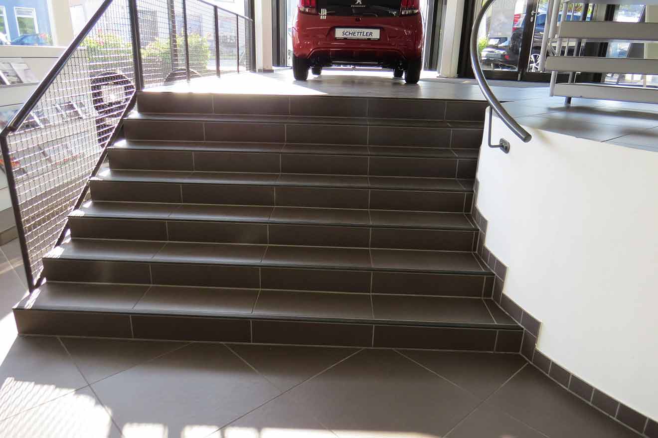 Die Anforderungen an den Fliesenboden großer Autohäuser sind vielfältig: Es soll eine moderne Fläche entstehen, die genau zu den ausgestellten Autos passt. Fliesen, Fugen und Untergrund müssen den tonnenschweren Fahrzeugen dauerhaft Stand halten. Gleichzeitig muss ein gefliestes Autohaus leicht zu pflegen sein, um Besuchern und Kunden ein ansprechendes und immer sauberes Ambiente zu präsentieren. Und zu guter Letzt sollen die Arbeiten schnell und möglichst staubfrei erledigt werden.Durch unsere langjährige Erfahrung im Fliesen von Autohäusern können wir diese Anforderungen und Wünsche zuverlässig erfüllen – von den Gesprächen mit Architekten über die Beratung zu unterschiedlichen Eigenschaften der Fliesen bis zur letzten Fuge.