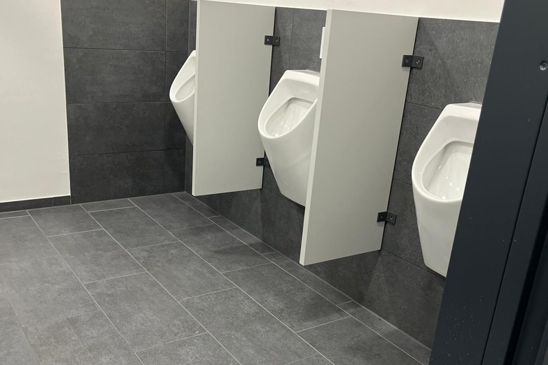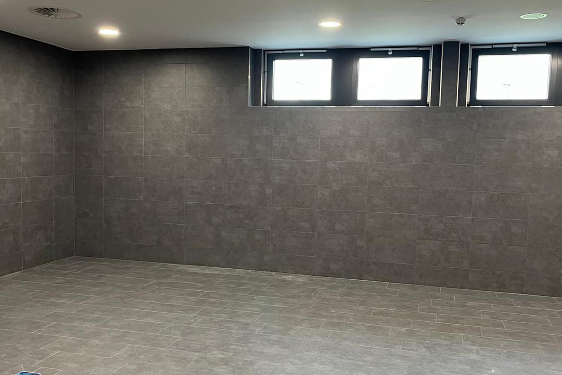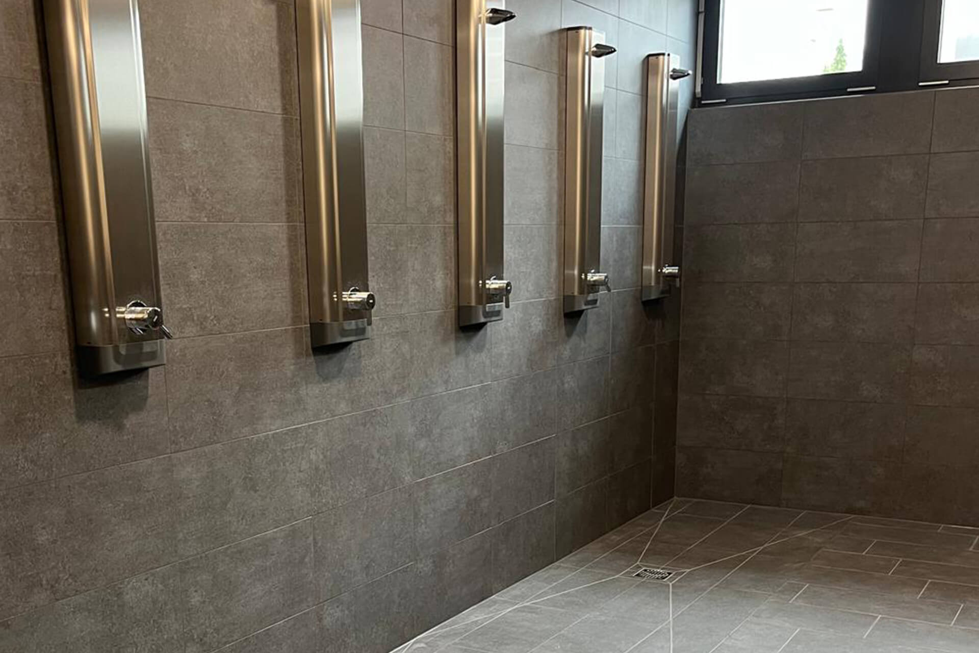 Funktion und Design aufs Praktischste vereint. Die Sanitäranlagen der Sportschule in Bielefeld sind optimal auf die Körperhygiene im Teamsport ausgerichtet. Hinter dem zweckgebundenen Design stecken großzügig angelegte Räumlichkeiten, Böden mit sorgsam platzierten Wasserabläufen und ein überzeugendes Beleuchtungs- und Lüftungskonzept. Ehrensache, dass Abläufe und Bodengefälle auch bei starker Beanspruchung die anfallenden Wassermengen zügig bewältigen.